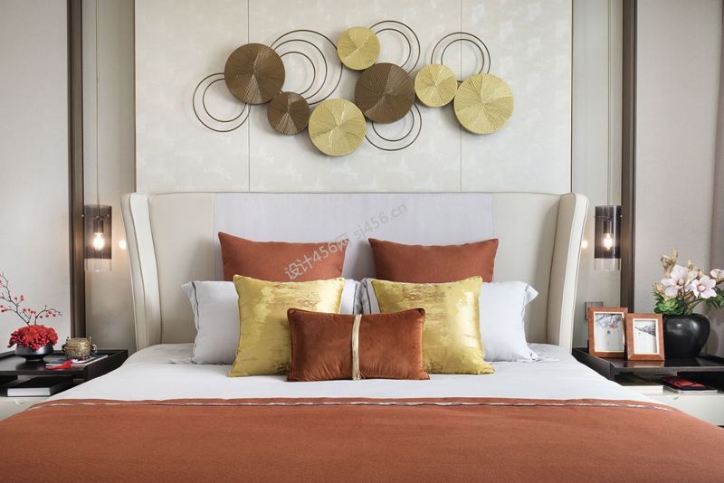 150平方四室新中式卧室背景墙装修效果图
