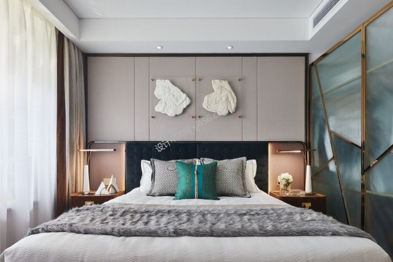 145平方四室新中式卧室背景墙装修效果图