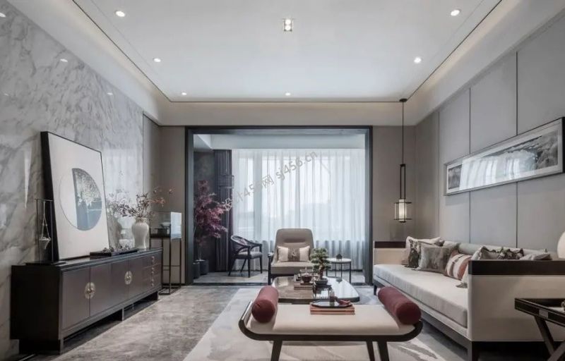 富力东堤湾畔135平三居室新中式风格装修案例风效果图