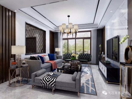 大连明珠121平三居室轻奢风格装修案例风效果图