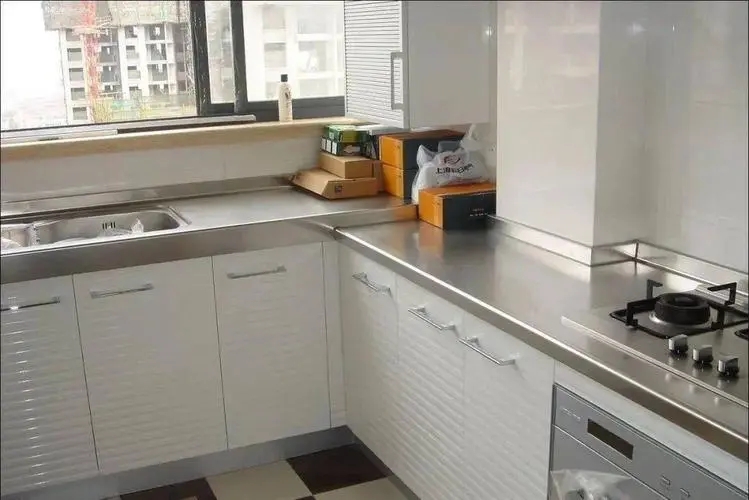 不锈钢是用于家庭橱柜及厨房工作台的传统原材料,一般是在高密度防火板表面加一层薄不锈钢板。