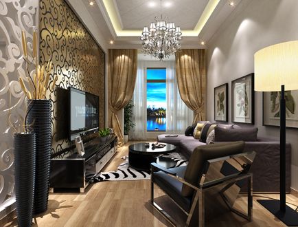 混搭风格客厅电视背景墙实景图