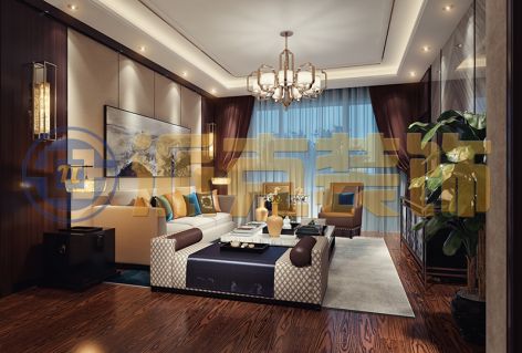国滨苑103平三居室轻奢风格装修案例风效果图