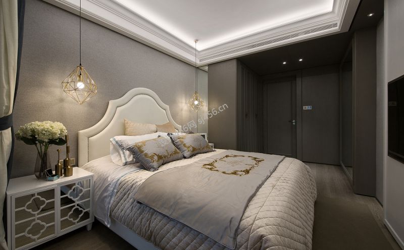 现代风格110平米三居室卧室背景墙装修效果图欣赏