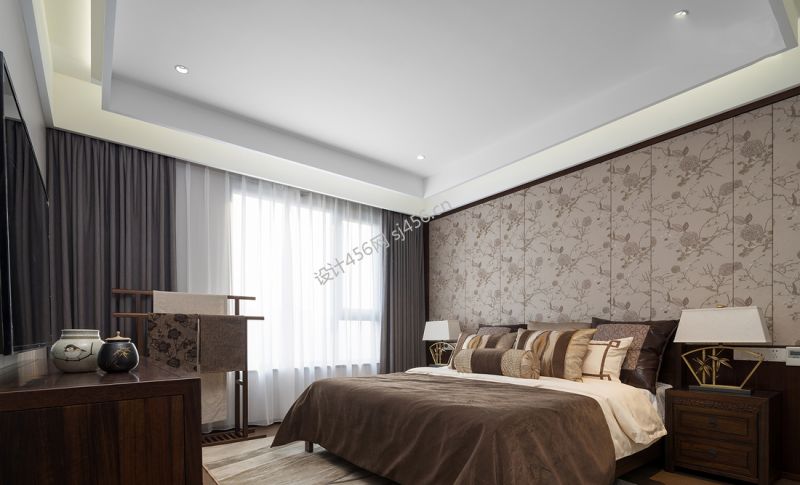 新中式风格125平米三居室卧室墙纸装修效果图