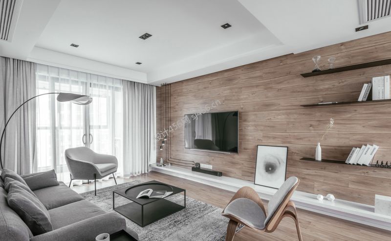 简约风格105平米三居室客厅电视墙装修效果图