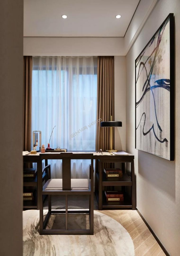 137㎡四居室新中式风格书房装修效果图