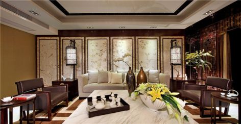 110㎡三居室中式风格客厅装修设计效果图