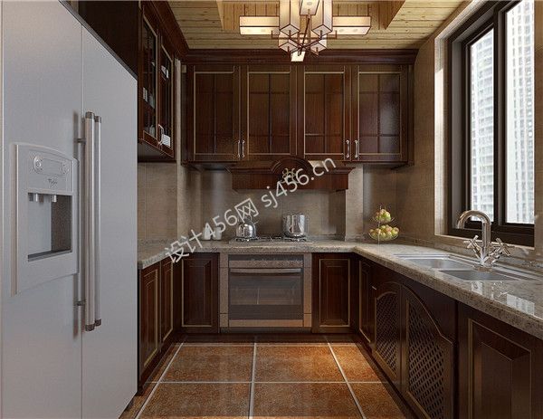 110㎡三居室中式风格厨房装修效果图