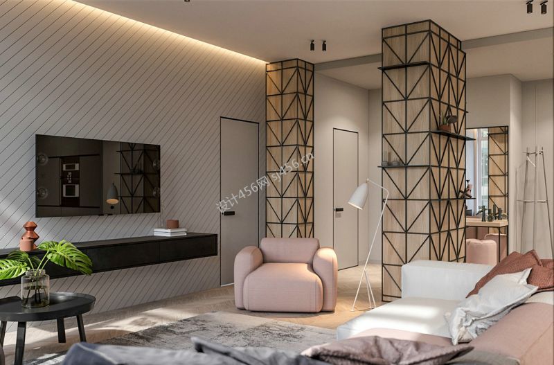 中铁·春风十里110平三居室极简风格装修案例风效果图