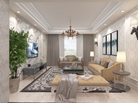 中铁建国滨苑148平三居室欧式风格装修案例风效果图