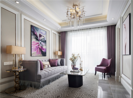 恒大港湾167平三居室轻奢风格装修案例风效果图