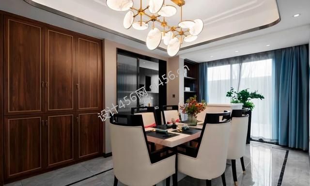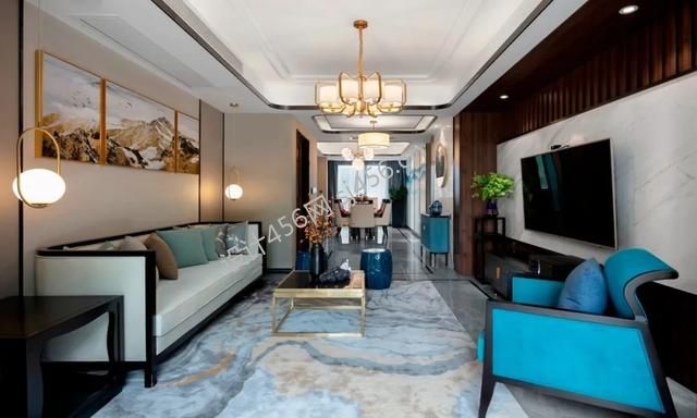 御龙海湾240平四居室新中式风格装修案例风效果图
