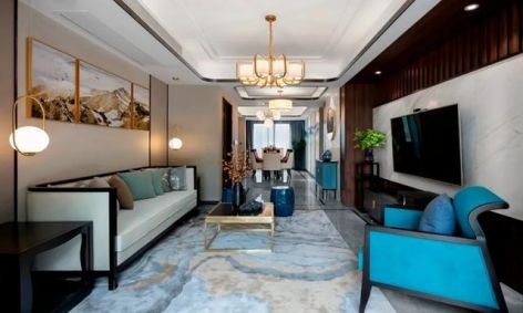 御龙海湾240平四居室新中式风格装修案例风效果图