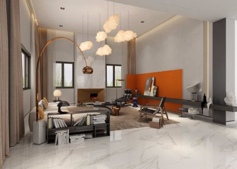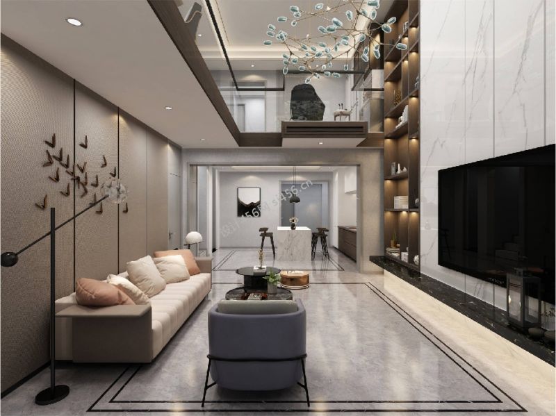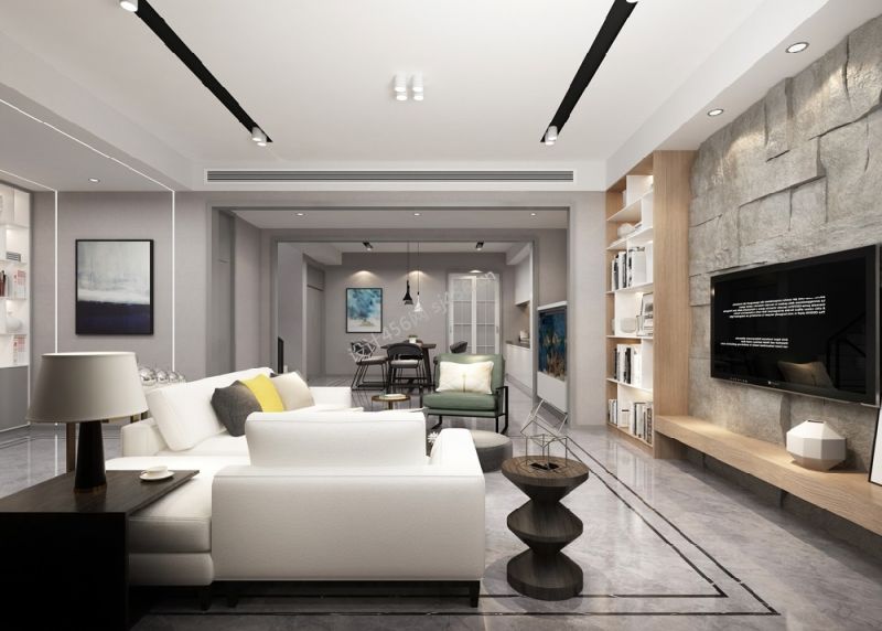 300㎡别墅现代简约客厅吊顶装修效果图