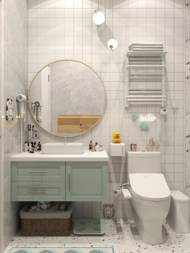 卫生间的灯光布置可以采取多光源设计,搭配主灯、筒灯、镜前灯等各种灯具,营造舒适氛围。