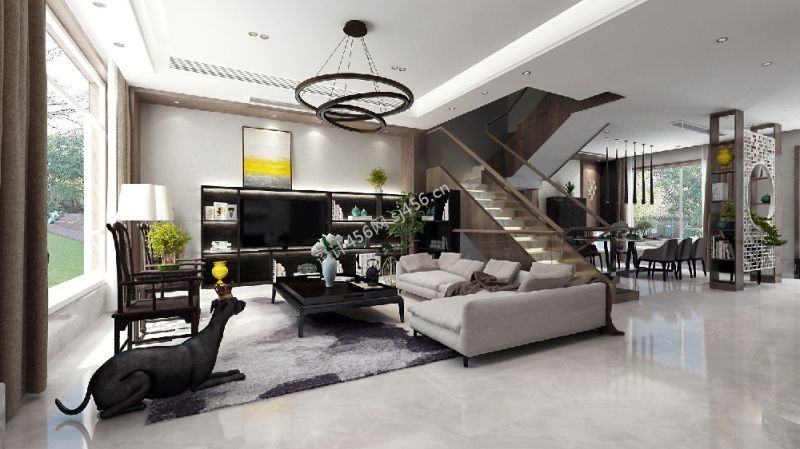 德嘉与海400平米别墅现代简约装修案例风效果图