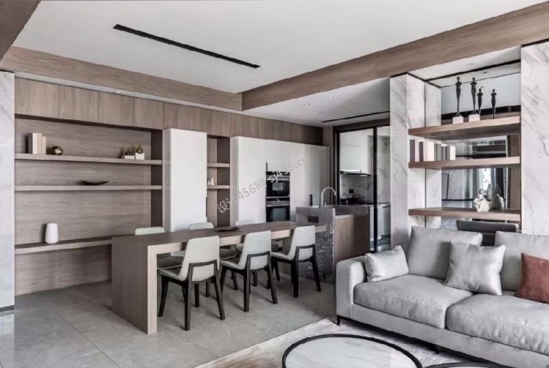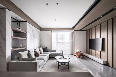中海海港城140㎡三居室现代极简装修案例风效果图