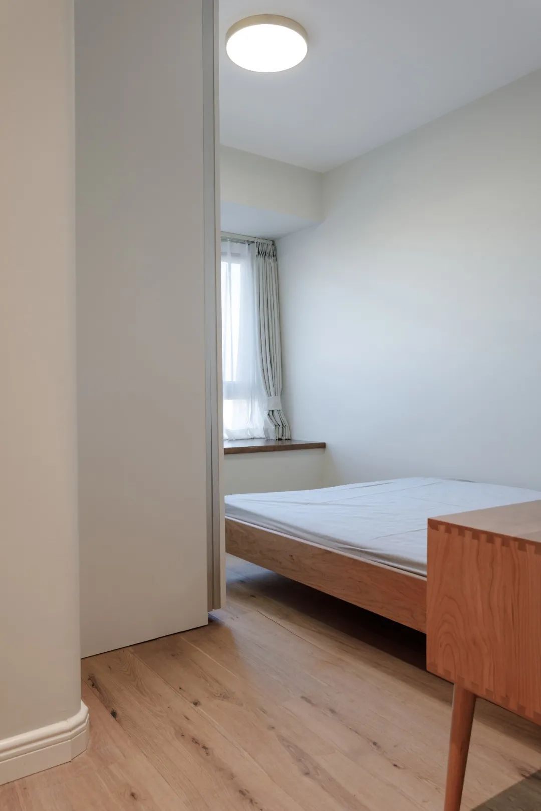 老人房也是把角落的空间利用起来,摆了一张床铺和床头柜,室内还有个小飘窗,窗台也能够摆放一些物品,光线也很不错。