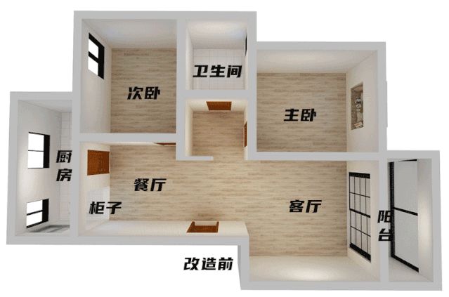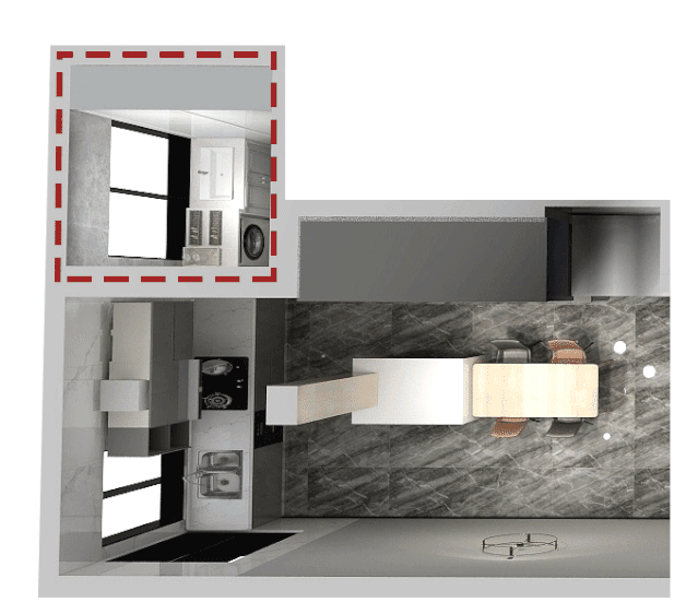 1/ 连通餐厨区,梁柱变岛台,增加操作台面