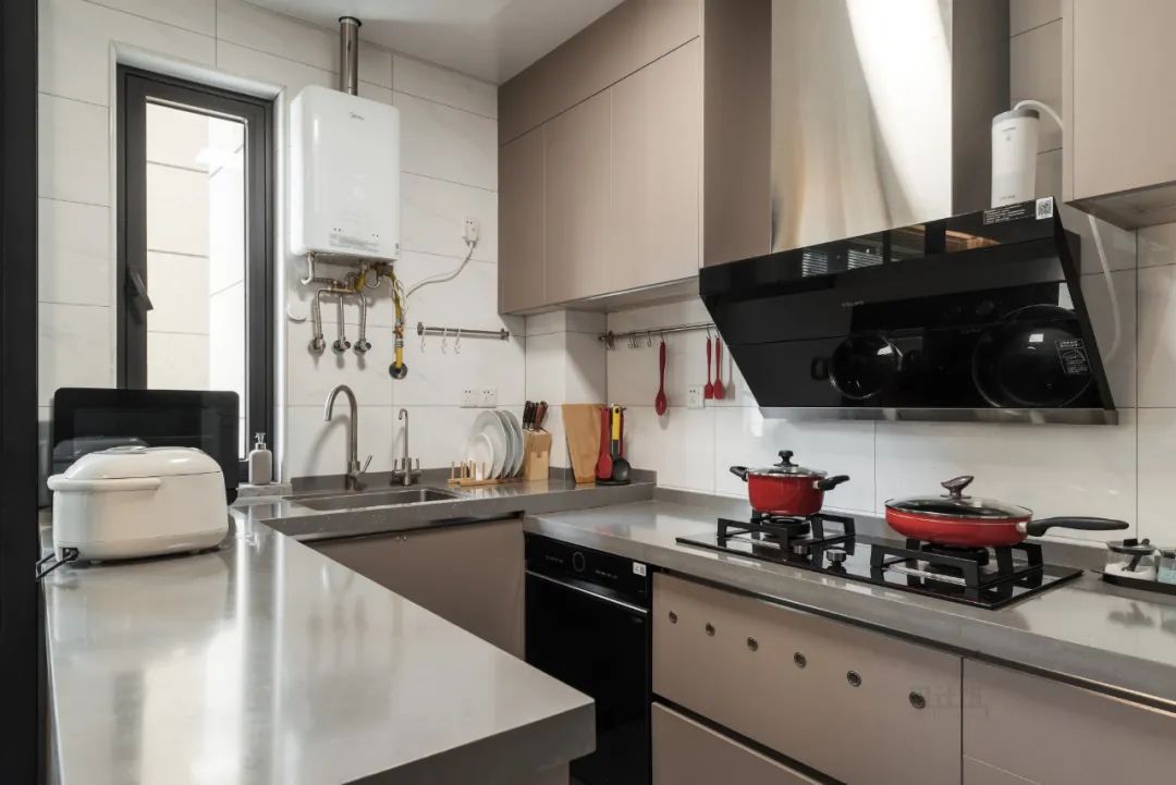 如果你家厨房的墙面砖不知道如何选,就可以考虑选用效果百搭、耐脏度高的灰色墙砖,尤其适合简约现代风的厨房,用灰色墙砖的效果是美观实用兼具,属于不容易翻车的选择。