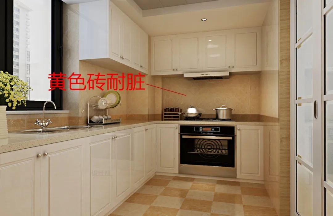 ▲厨房墙面用黄色砖更不显脏,适合懒人家庭。