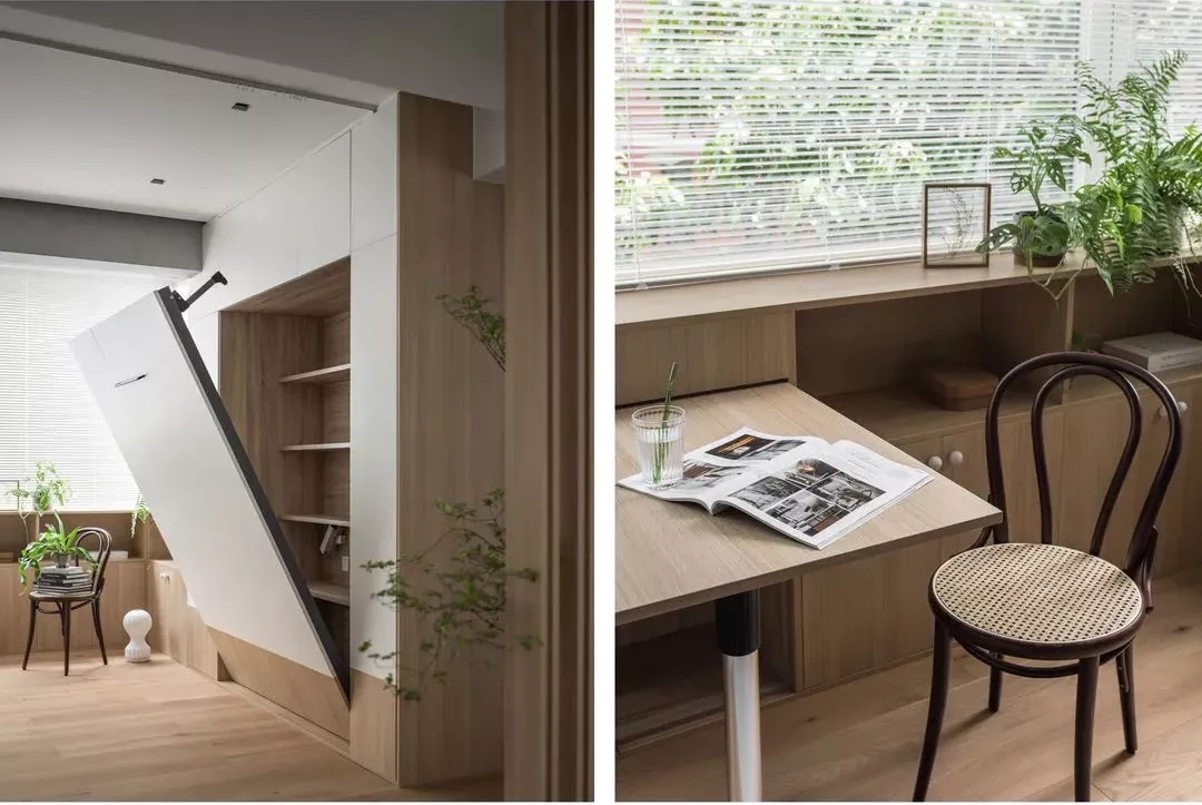 屋主希望小朋友成长过程,不需要太多电子产品干扰,直接舍弃了电视安装,改做了折叠床,必要的时候可以变成客房使用。