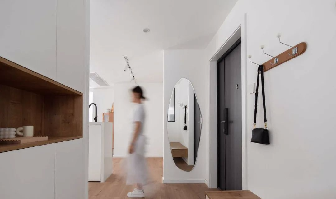 ▲玄关,拆除入户左侧的杂物间,左右增设高低玄关柜作为部分生活用品以及鞋类收纳的空间