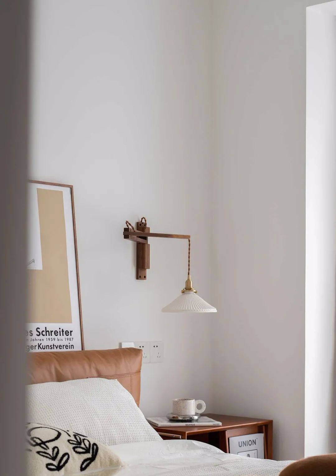 ▲床头的摇臂复古吊灯与家具风格协调搭配,更为空间增加趣味性