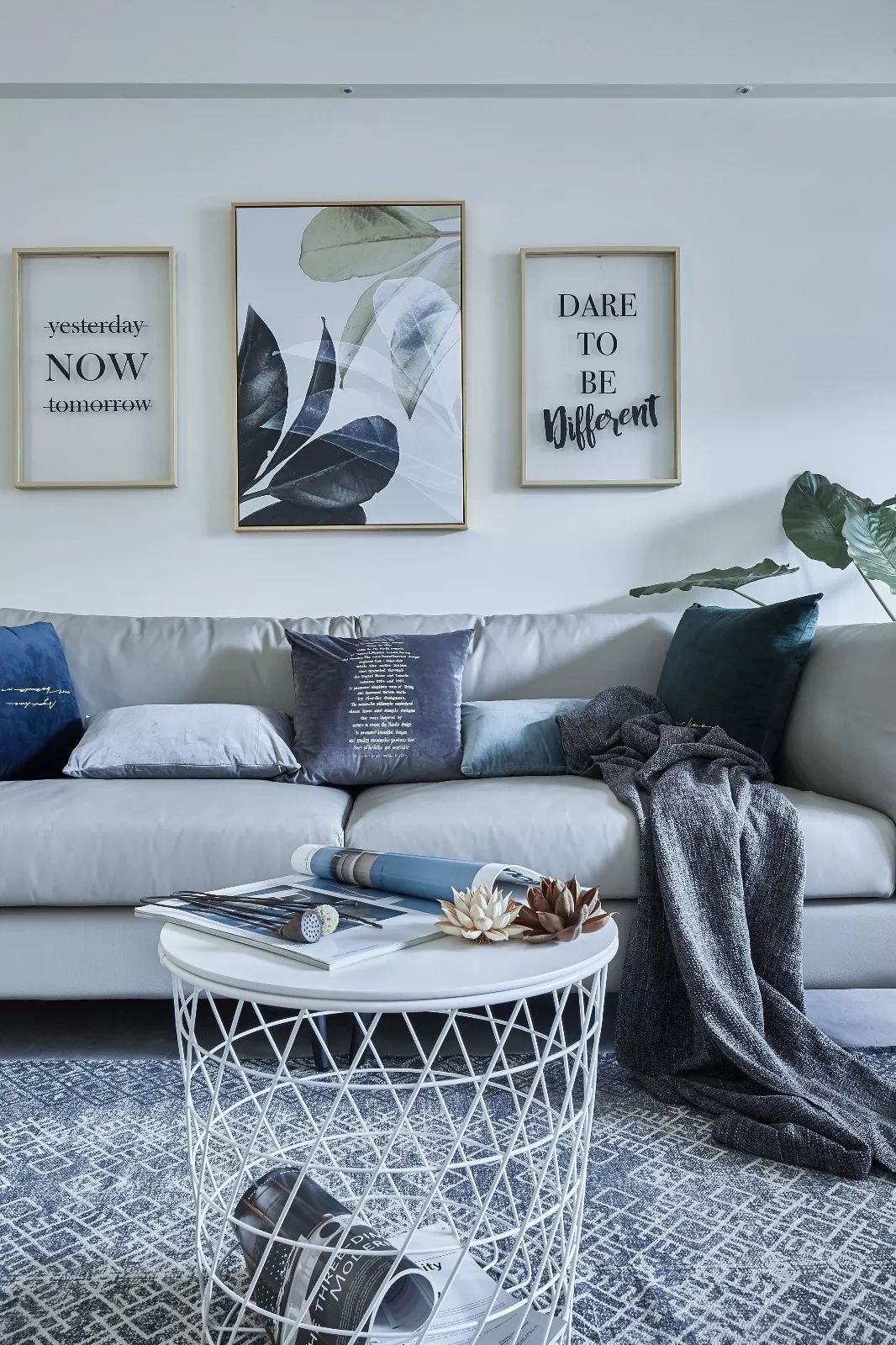 沙发、抱枕及装饰画的配色,都选择自然色,给人一种很纯净的感觉,多但不杂,看着很舒服。灰白花纹地毯优雅耐看,做为陪衬,不喧宾夺主,也给空间增添了温暖舒适的感觉。