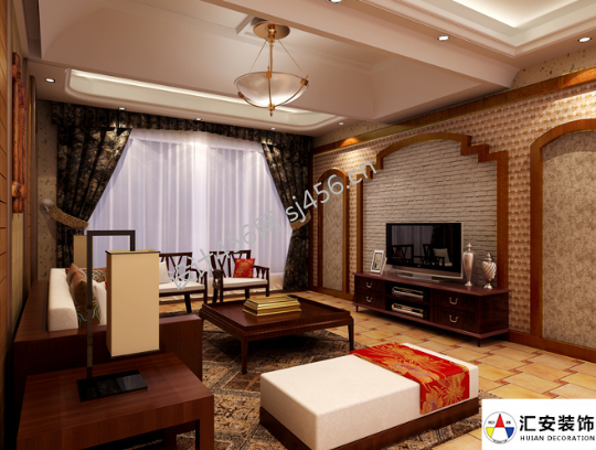 艺海花城中式180平米电视背景墙装修设计效果图欣赏