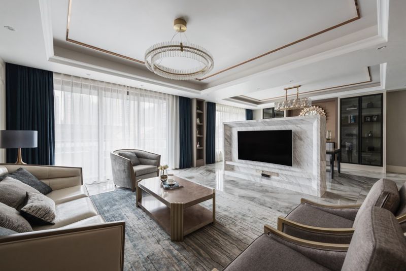 远疆天域114平米三居室轻奢风格装修设计效果图