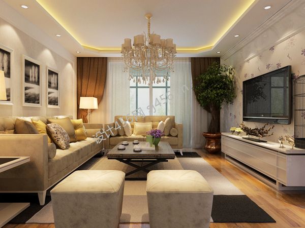 康城丽都120平米三居简欧风格装修效果图风效果图