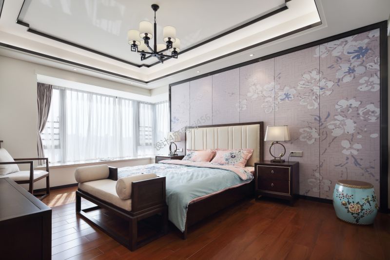 126平米中式风格三室两厅卧室吊顶装修效果图
