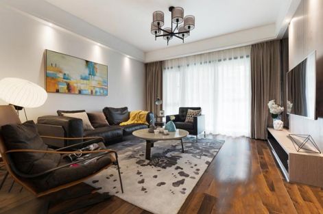 保利紫山花园104平米现代风格三室两厅装修案例风效果图