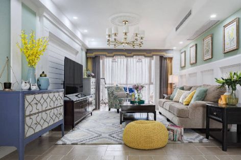 万科城市之光美式风格115平米三居室装修案例风效果图