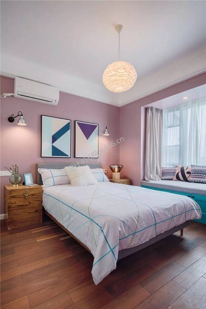 107㎡北欧风格三居室卧室背景墙装修效果图