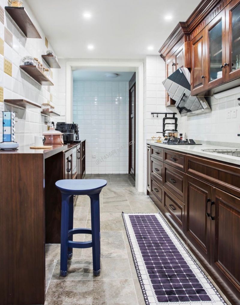 现代美式风格三居室厨房吧台装修效果图