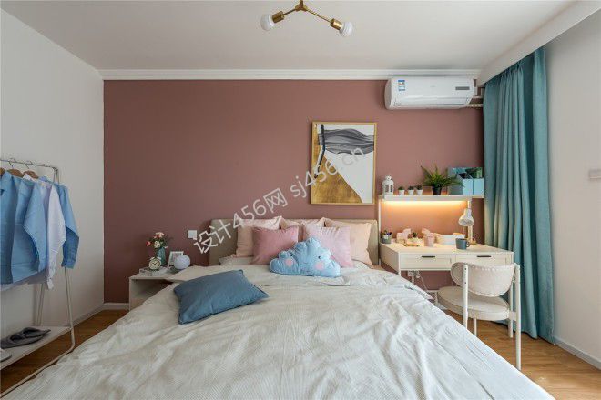 北欧风格三居室116平卧室背景墙颜色装修设计图