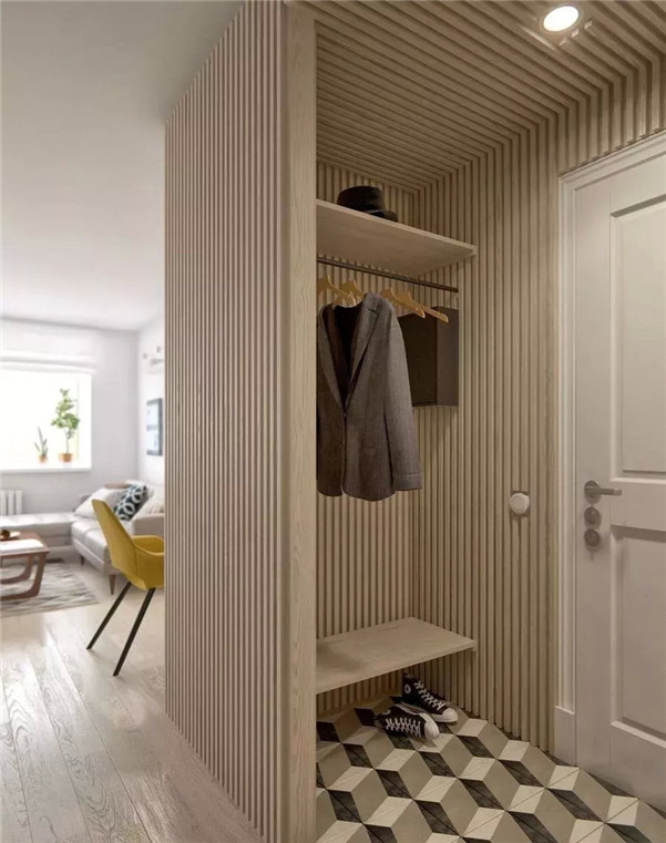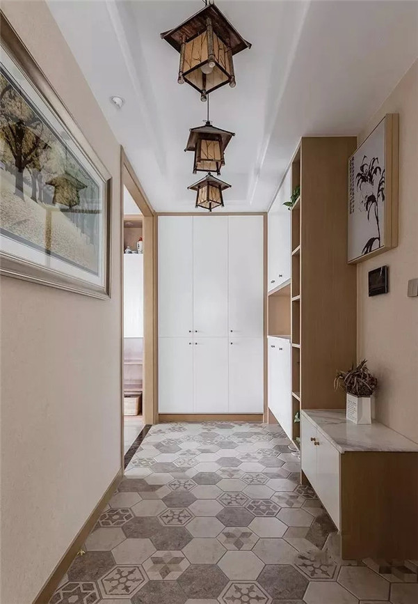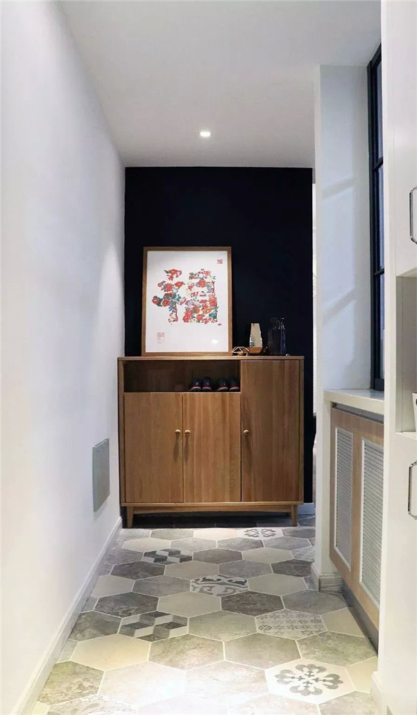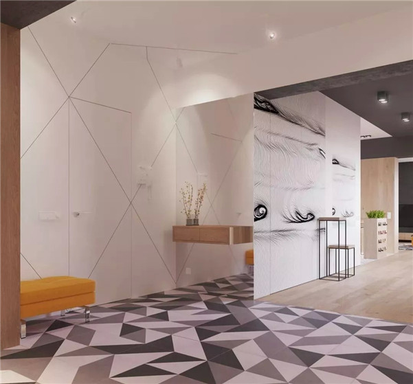 大面积铺设让入户更与众不同,搭配墙壁一些线条、饰品等,满满的艺术气息。