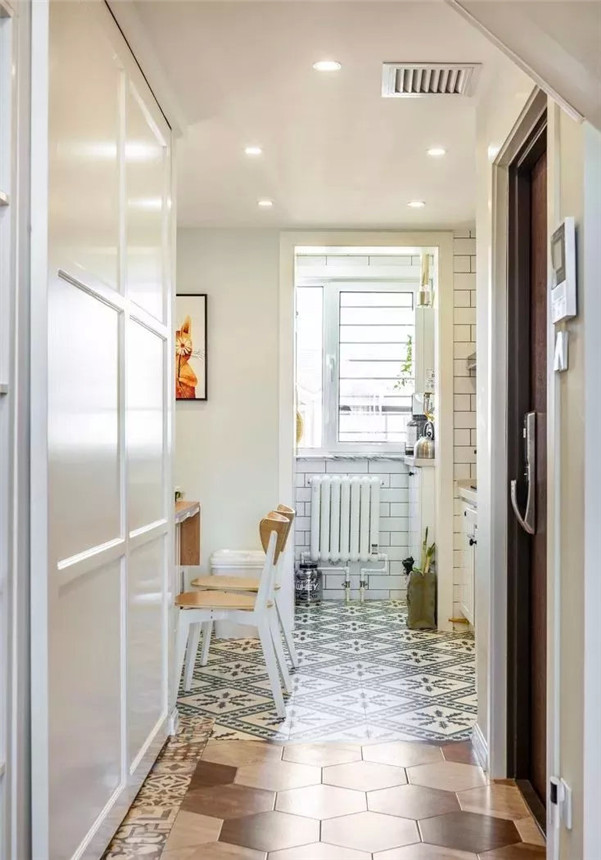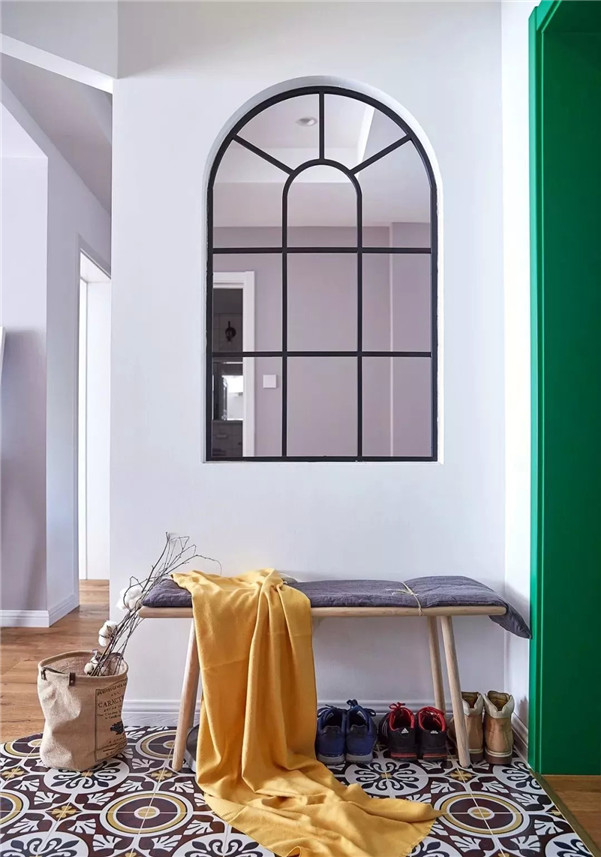铺木地板的居室,不妨给玄关选择一些花砖,不仅提升入户的颜值,还极大方便了清洁。
