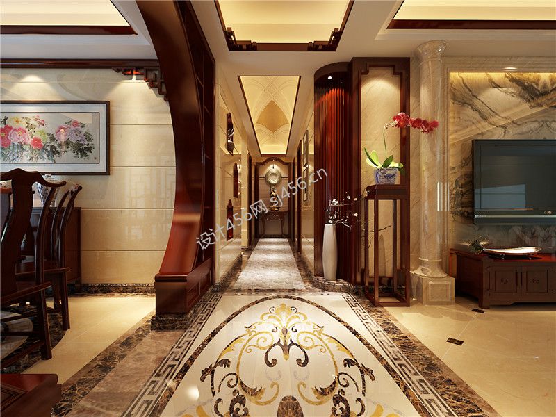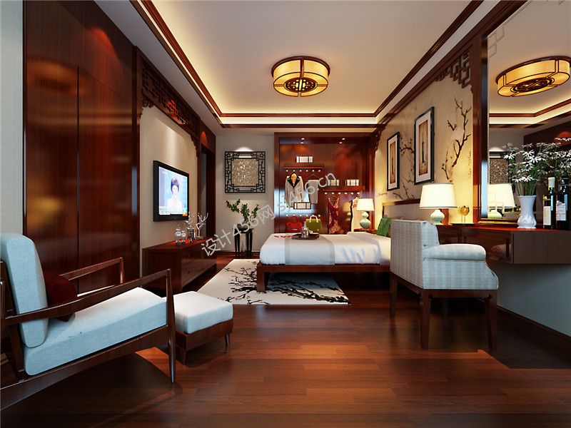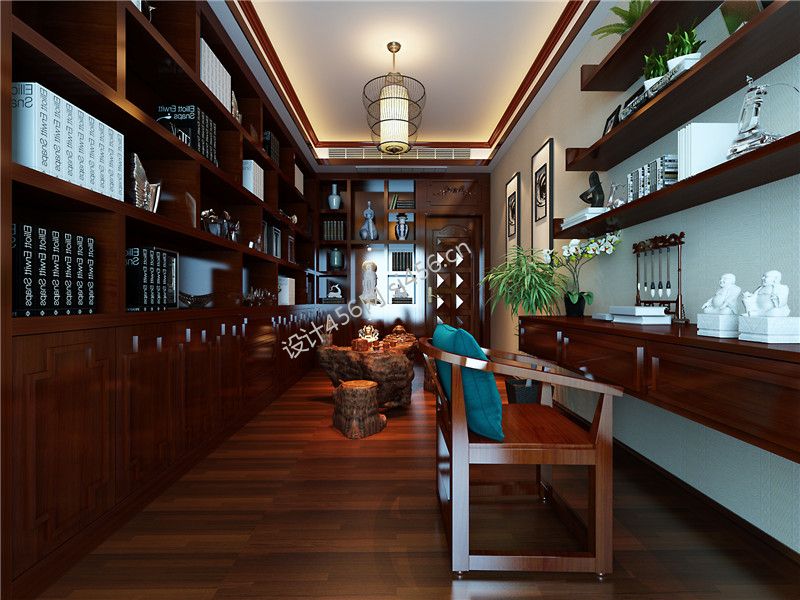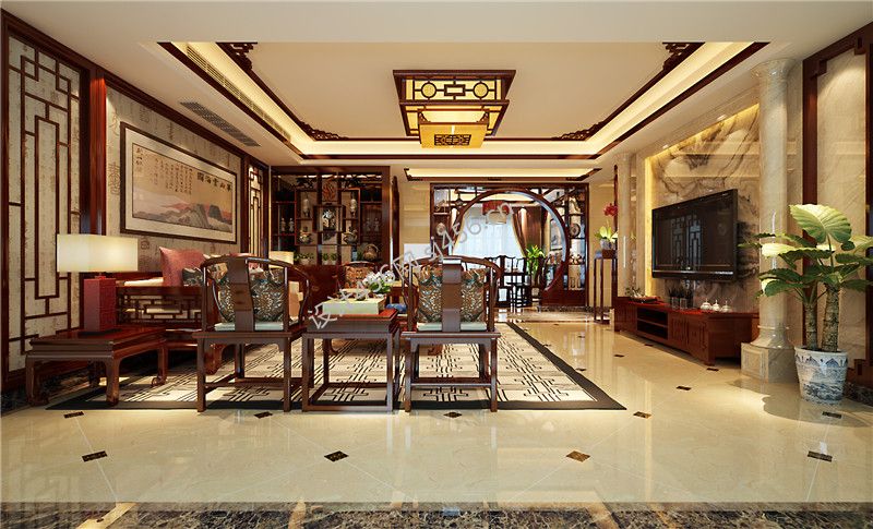 领地海纳公馆118平米新中式风格三居装修案例风效果图
