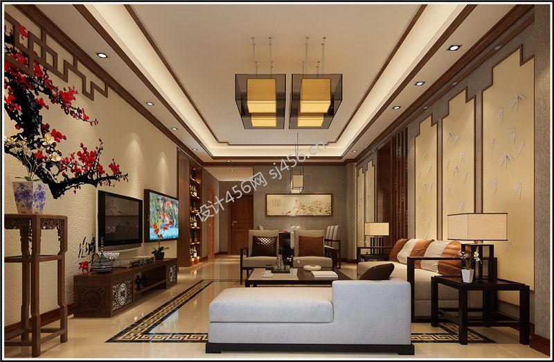 领地海纳公馆118平米新中式风格三居装修案例风效果图