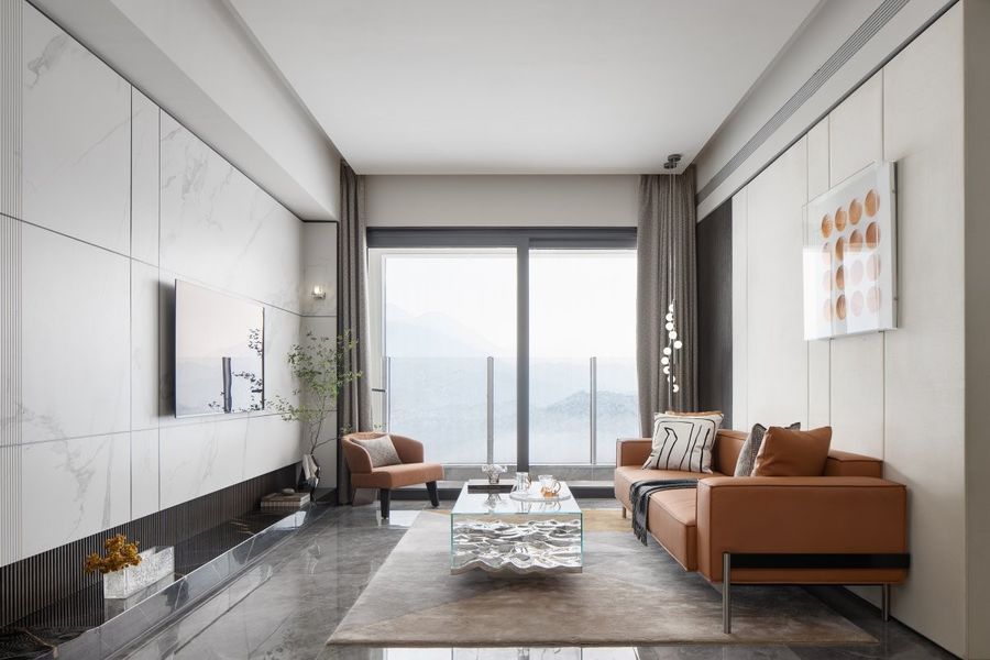 1、长方形的客厅在装修时整个房间的颜色与材质需做到一致,禁止使用深色调或是颜色很复杂的色彩来装饰客厅的墙面,那样会显得空间更加狭窄,应选择浅色系的装修材料,浅色调能使长方形的客厅看起来更加宽敞明亮。