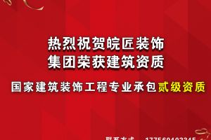 热烈庆祝皖匠装饰荣获二级装修资质。皖匠装饰,安徽20年本土装修品牌。 安徽皖匠装饰公司自成立以来,表现很突出加载中...