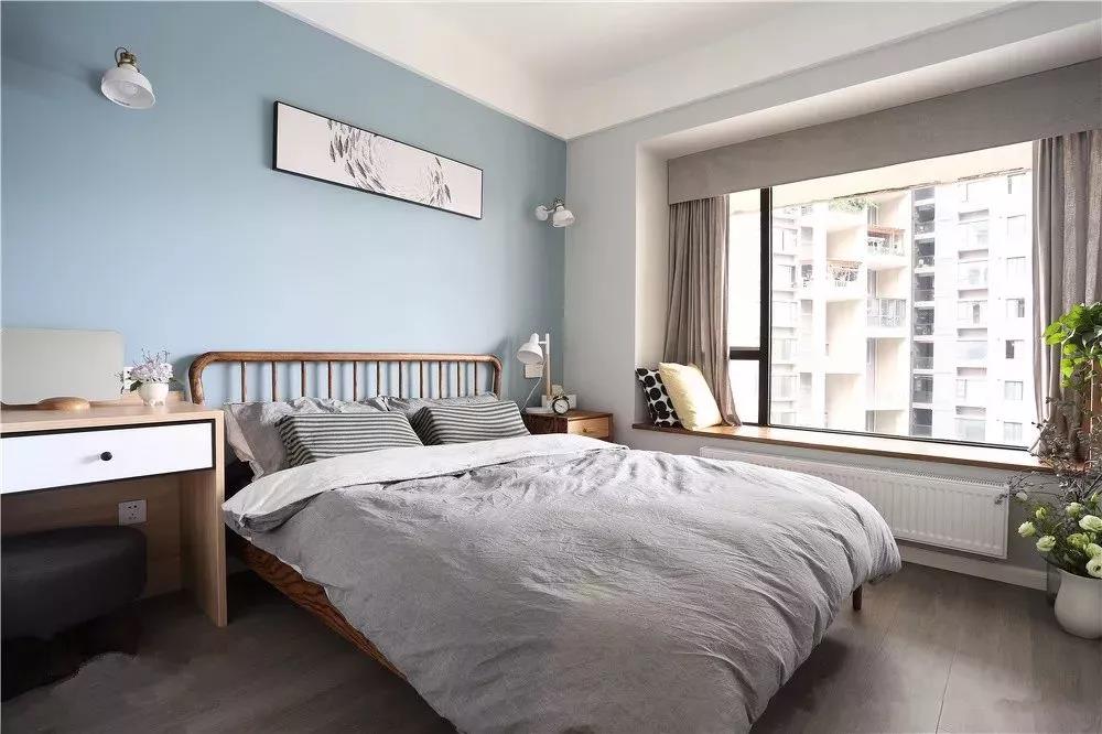 卧室的墙面在南宁卧室装修中要与床的颜色突出一个重点色,这样深浅色调结合使用可以让卧室看着更温馨,然后再搭配亮色的软装装饰品,为卧室增添灵动的味道。