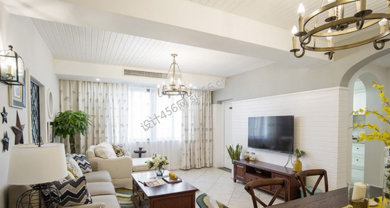 凤凰花城110平美式三居室装修案例风效果图