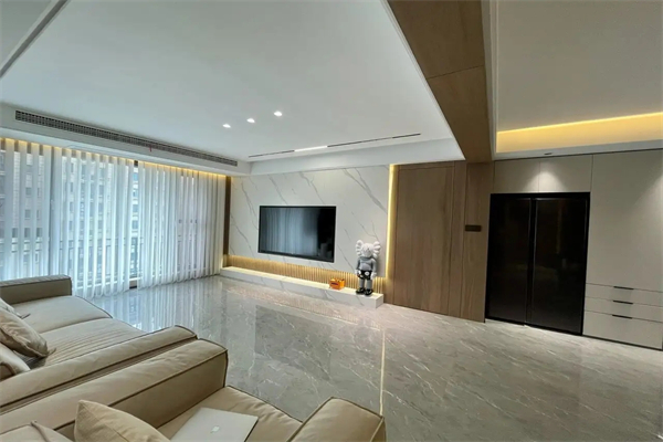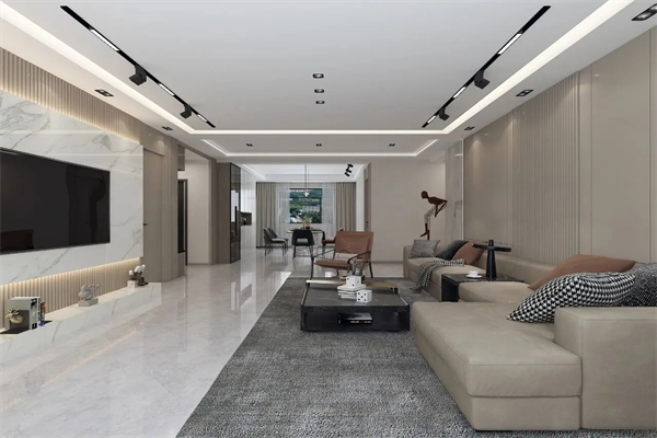 无主灯的设计可以使空间看起来更加开阔,但是顶面设计需要稍微加入一些造型变化,如果只是大平顶容易让空间很“平”,没有变化容易让人觉得“索然无味”,尤其在较大面积的客餐厅中,这种感受会更加明显。