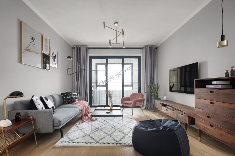浦新小区北欧风83平米二居室装修设计案例风效果图
