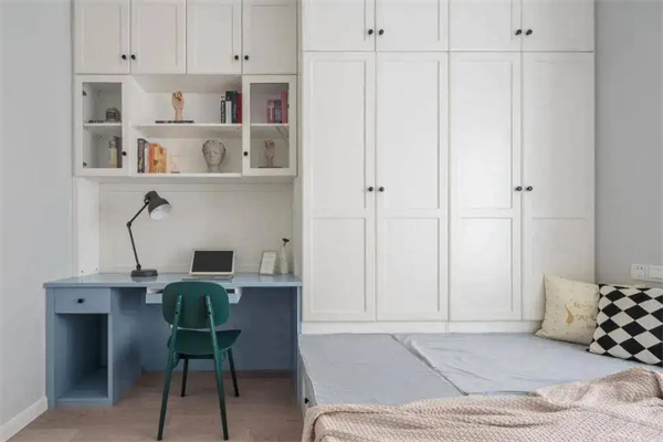 将小卧室打造成榻榻米,早已变成了近些年房子装修的这种潮流趋势。由于功能多,形状多样,不仅可以大大提高空间利用率,而且具有强大的储物功能,很容易达到“一室多用”的效果。塌塌米历经更新改造后,能够 变为集收纳整理、入睡于一体化的小户型房子武器。实现这种多功能设计的最佳方式是将榻榻米与各种橱柜结合起来。